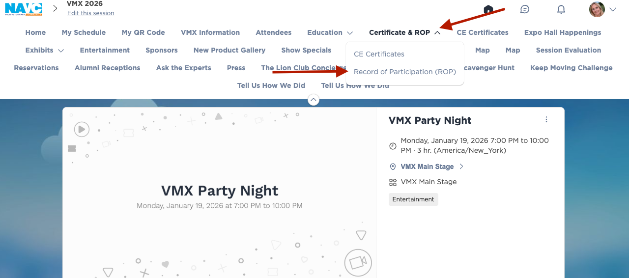 Navigate to Certificate & ROP and click on the dropdown. Choose Record of Participation.