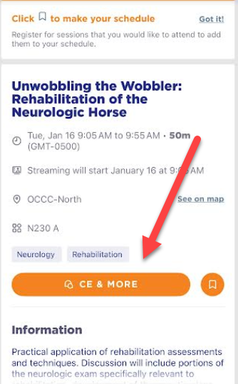If a session is missed or missing from your records, search for the session under the Education tab then Add CE on the session page.