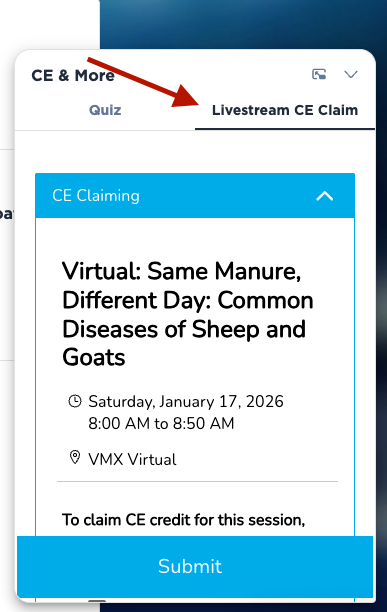 Click to open this and there will be an option to add the CE to your record. If it is a Livestreamed session, you will add by clicking on Livestream CE Claim.
