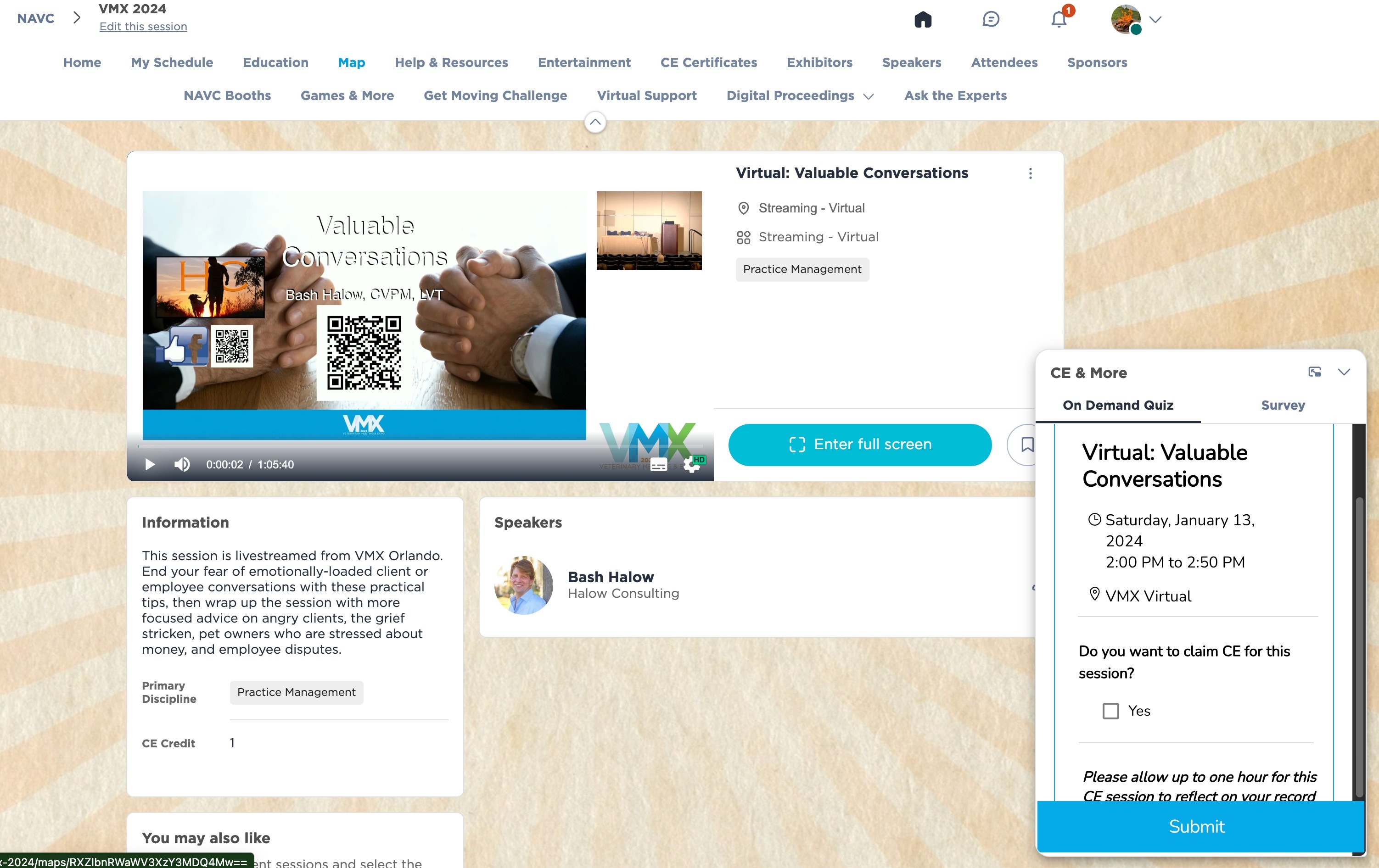 Under the Education tab, search for the missing session. On the bottom right, you will see CE & More.